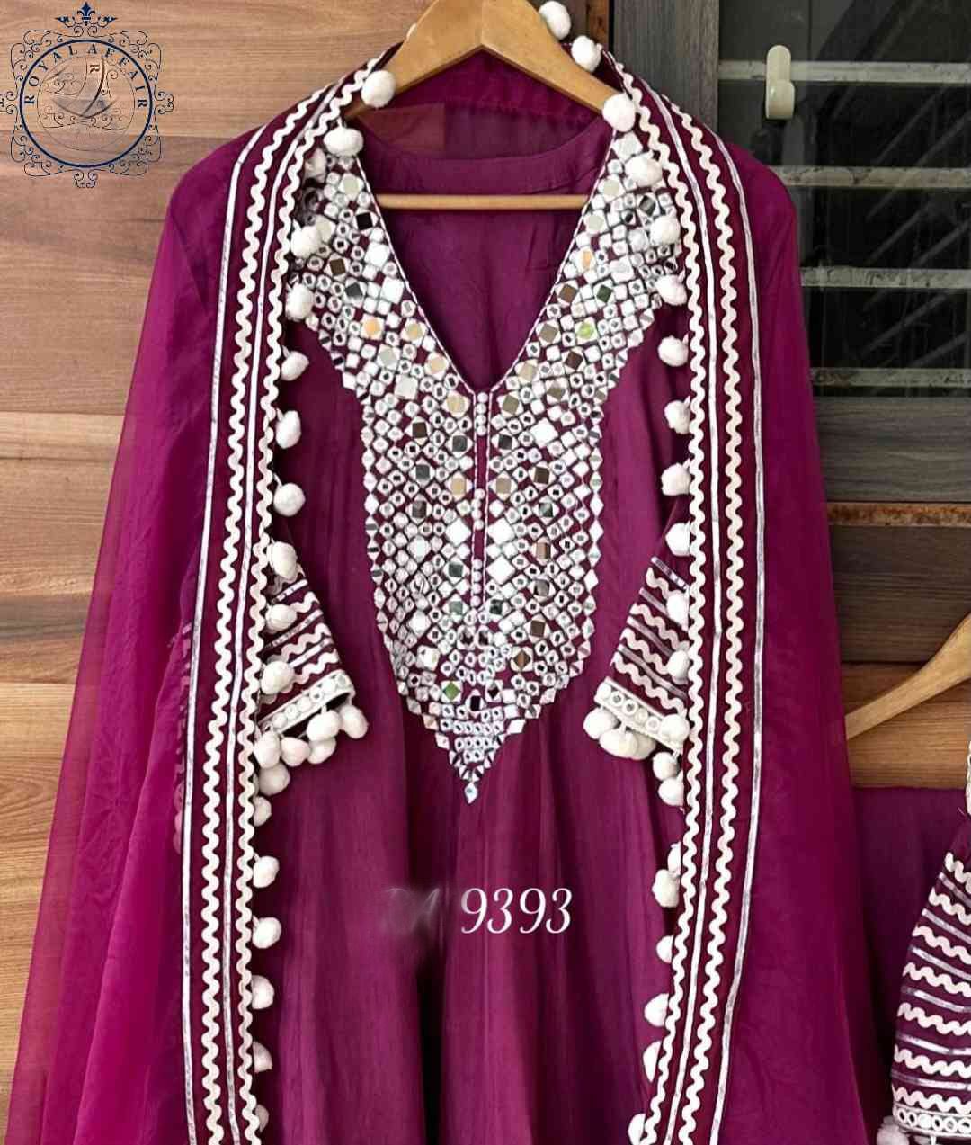 pure cotton silk designer stiched anarkali patterned shirt with beautiful original mirror embroidered neck plus pearl detailings plus gota and lace detailings along with pom pom on ghera and sleeves....(attached inner) *complimentary potli*
