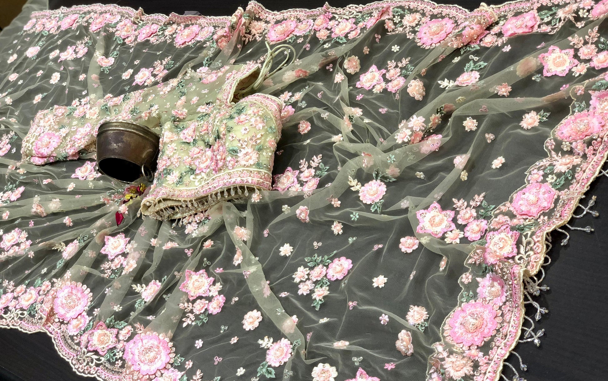 Designer inspired saree net saree floral heavy embroidery sarees blouse