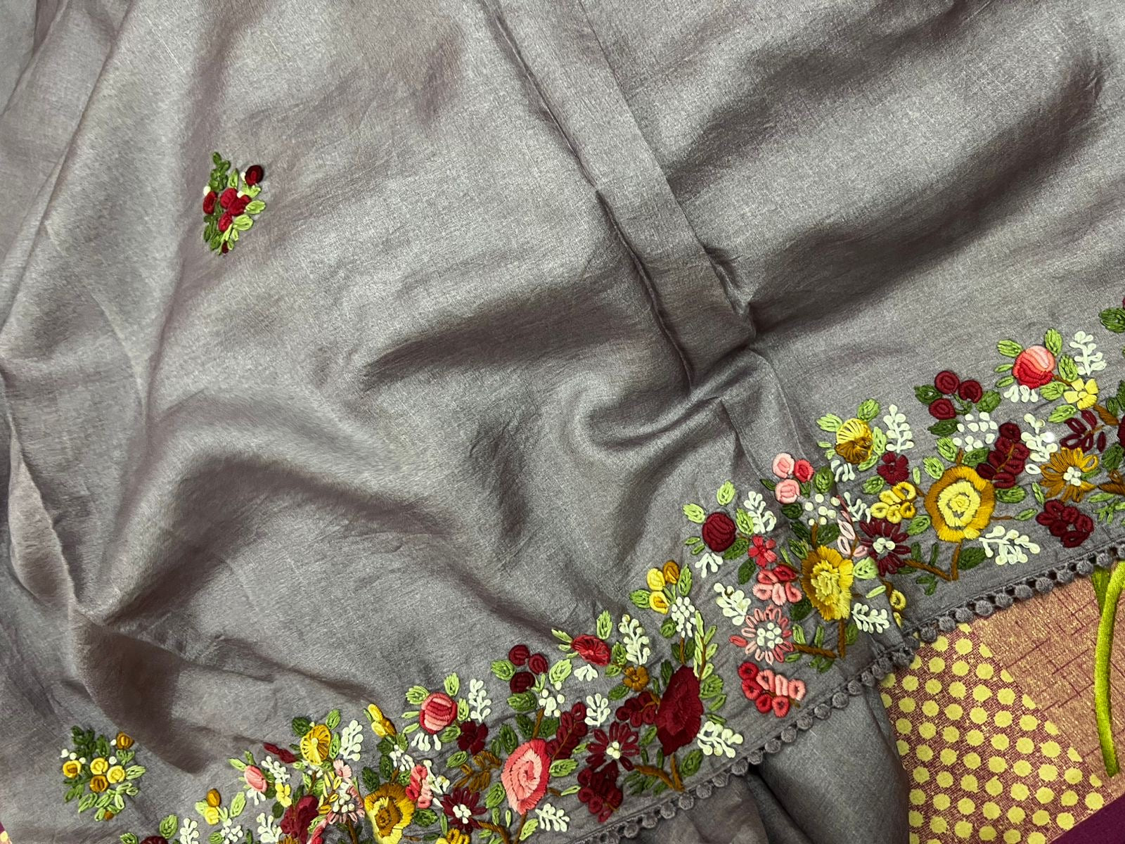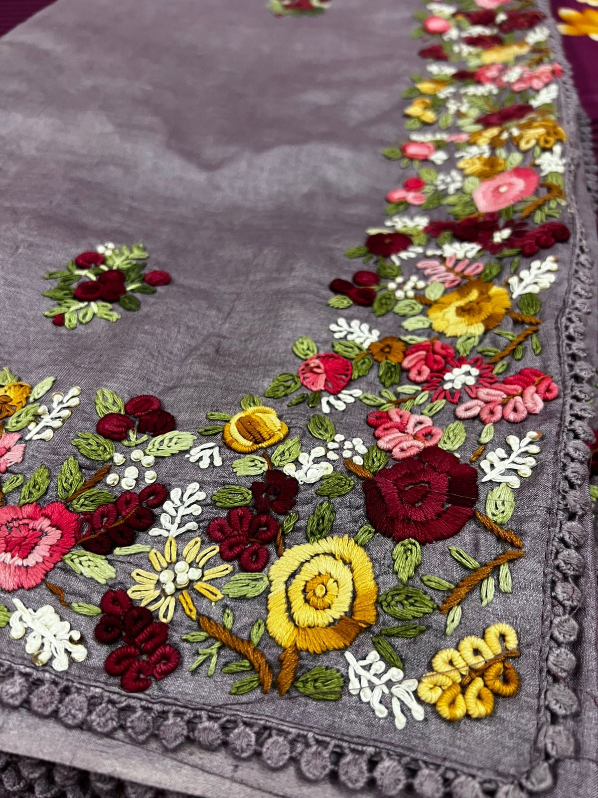 Lavender tussar saree French knot sarees hand embroidered sarees blouse