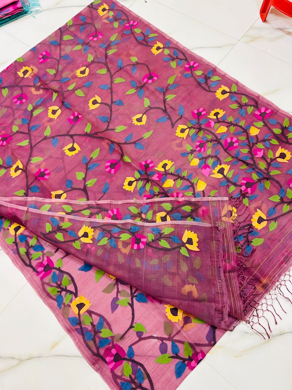 Experience the exquisite beauty of our Pure Muslim tantuj jamdani saree. Made with the highest quality materials, this saree exudes elegance and sophistication. With its intricate jamdani work, it is sure to make you stand out at any occasion. Embrace the rich history and craftsmanship of this traditional saree.