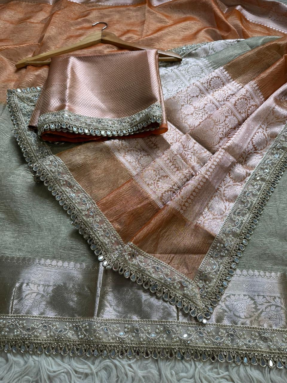 Premium crush saree tissue saree Indian saree blouse Partywear sari