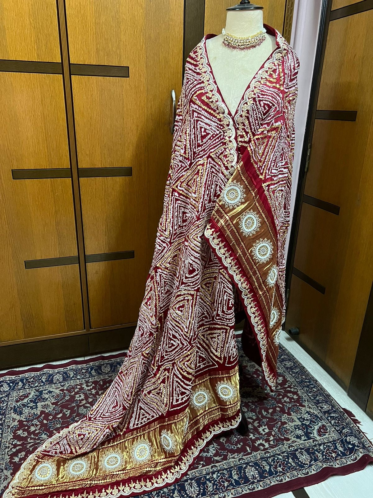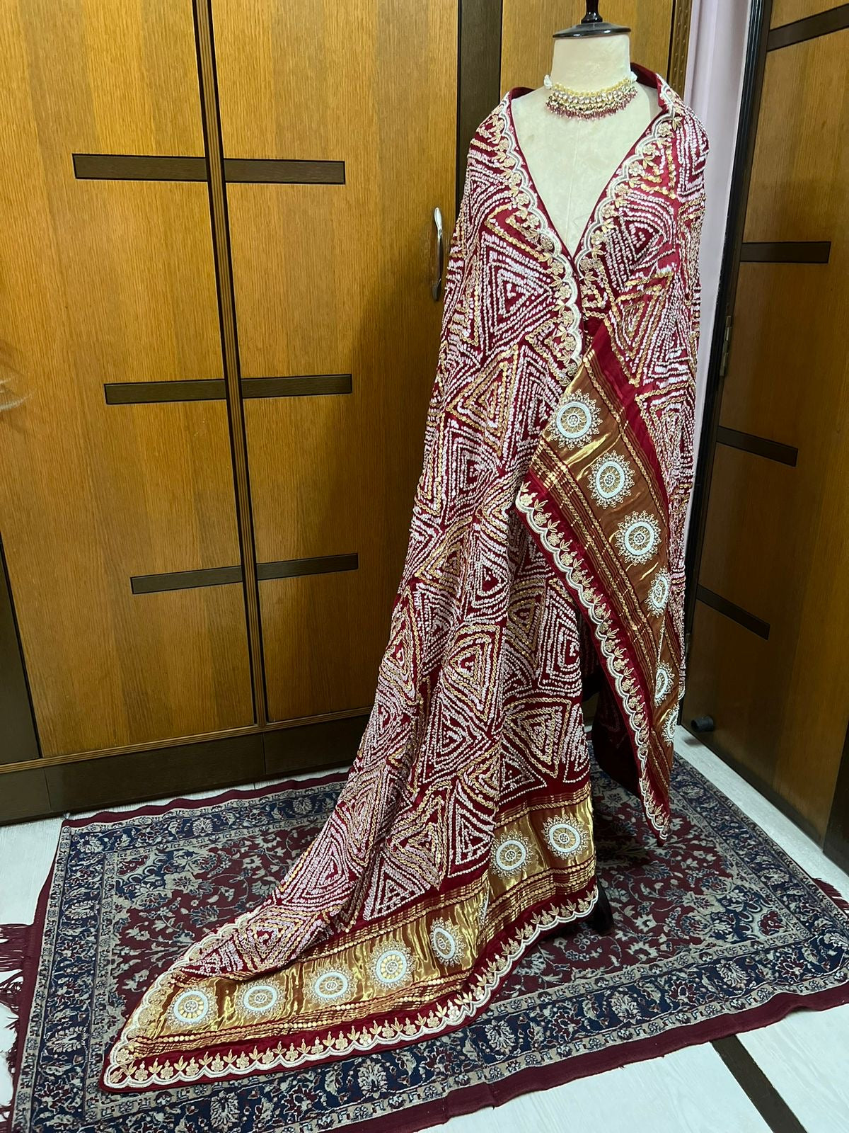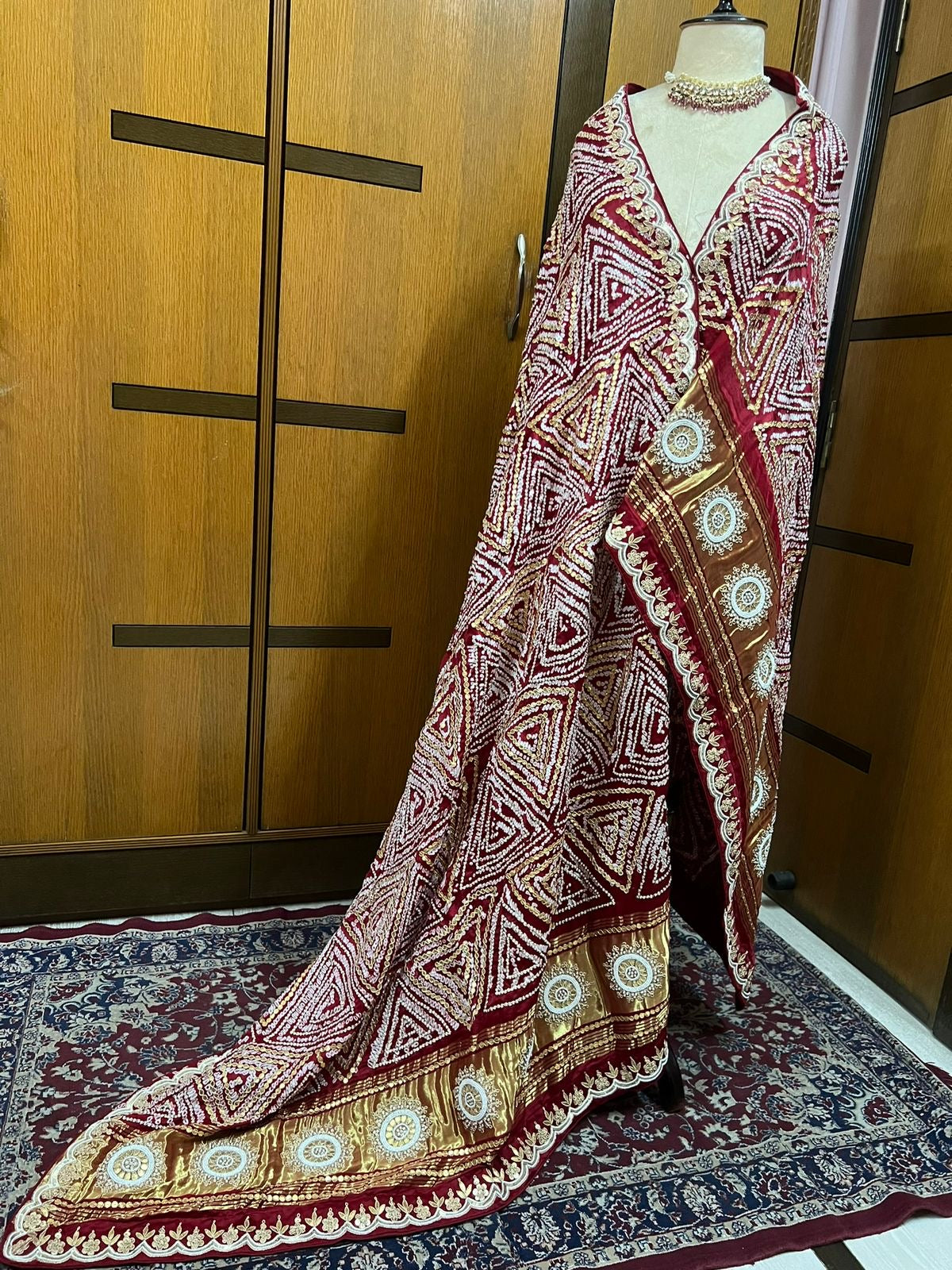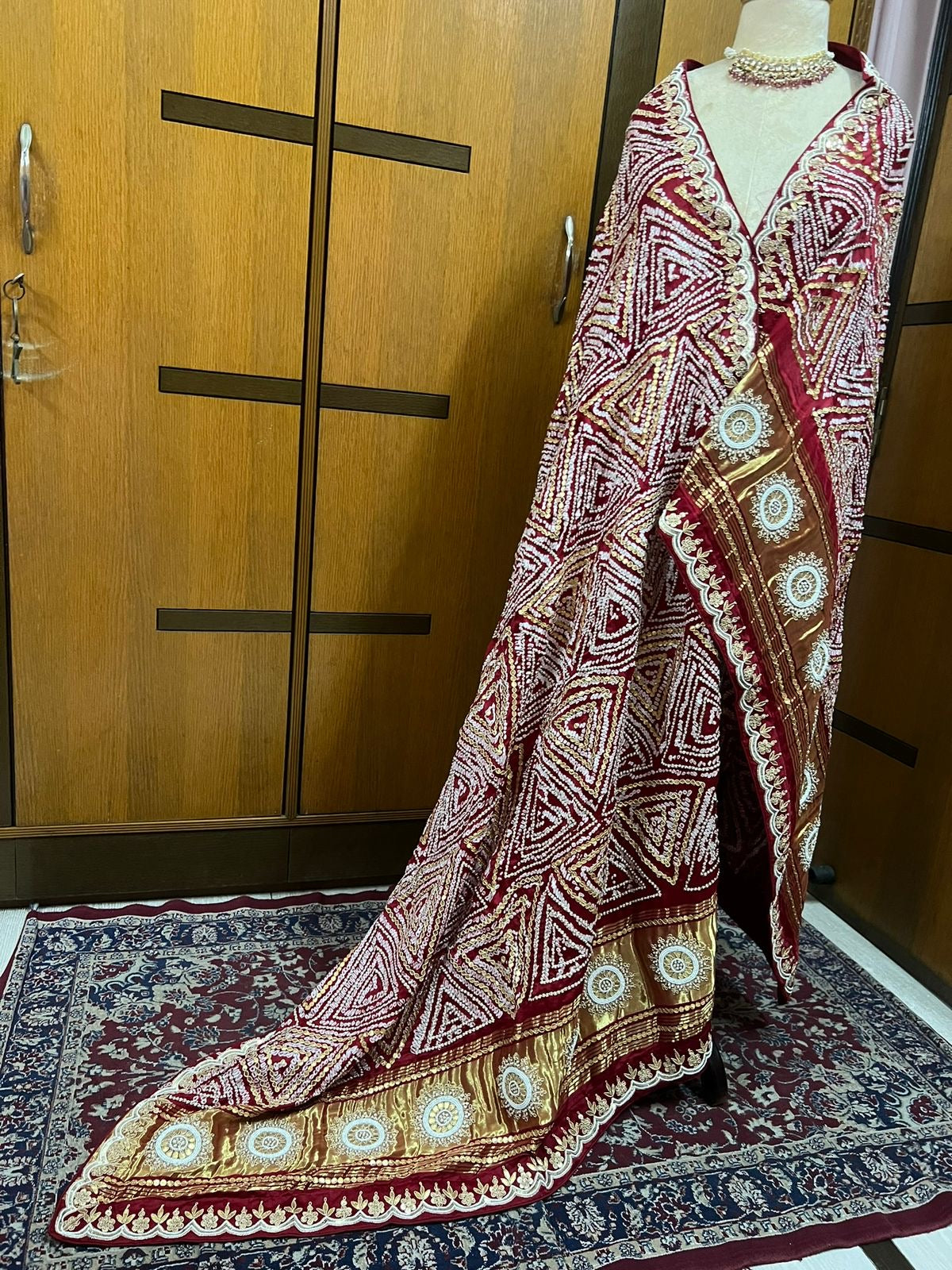 Handmade from 100% pure gajji silk, this bandhej dupatta takes 30 days to create. Experience the luxurious feel of silk and enjoy the intricate craftsmanship of hand-tied bandhej designs. Elevate your outfit with this unique piece that adds a touch of elegance and sophistication.