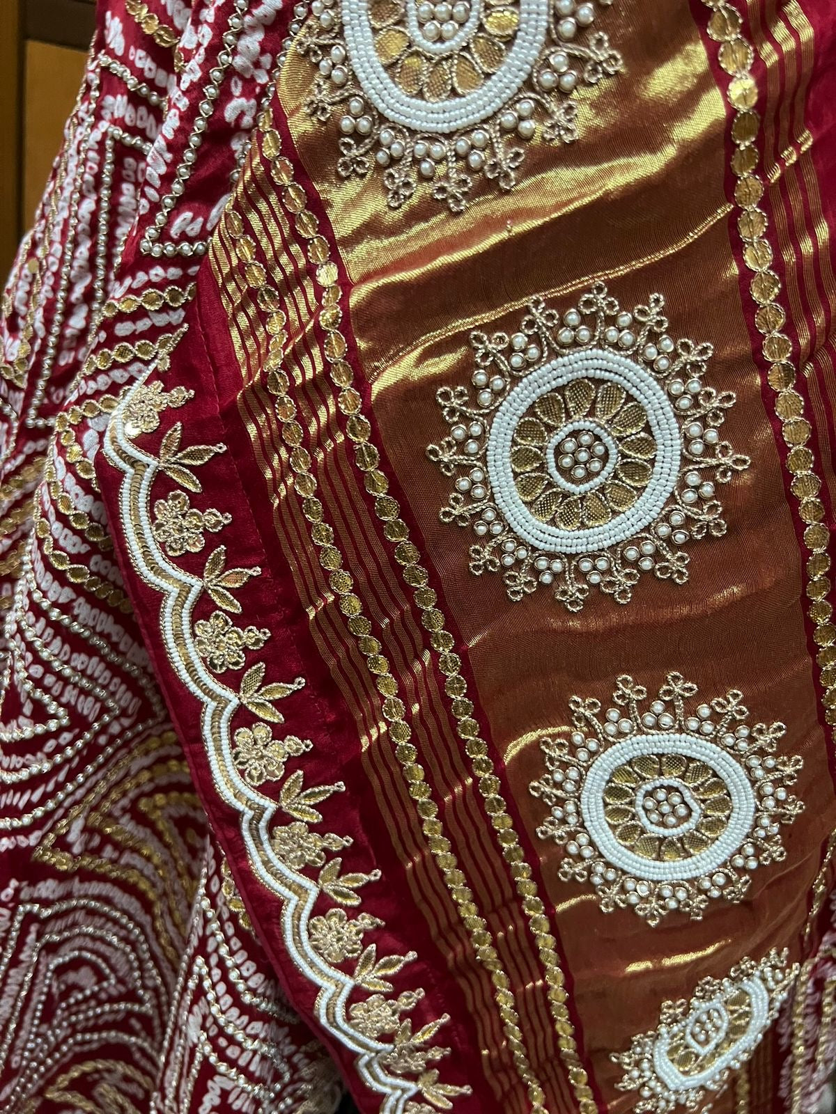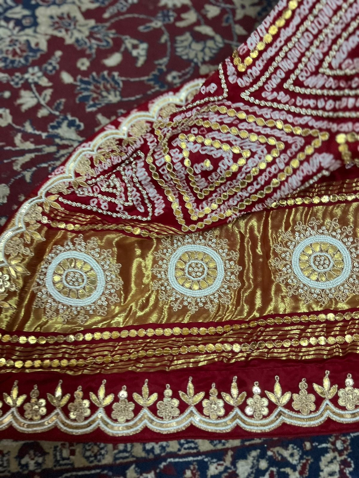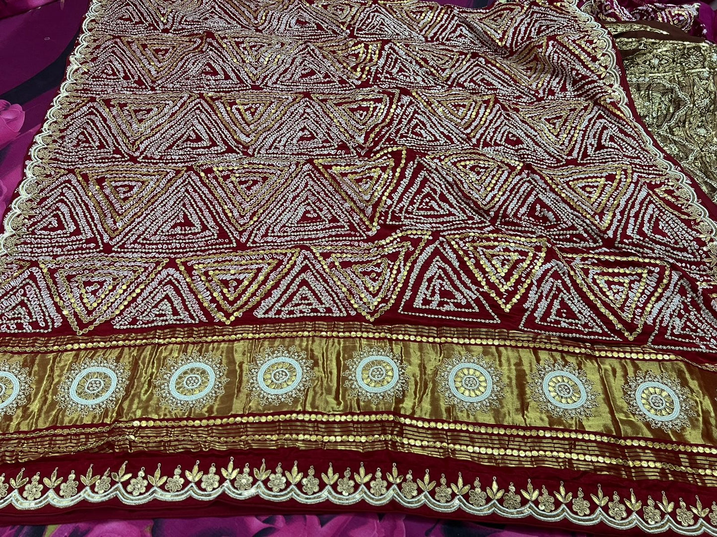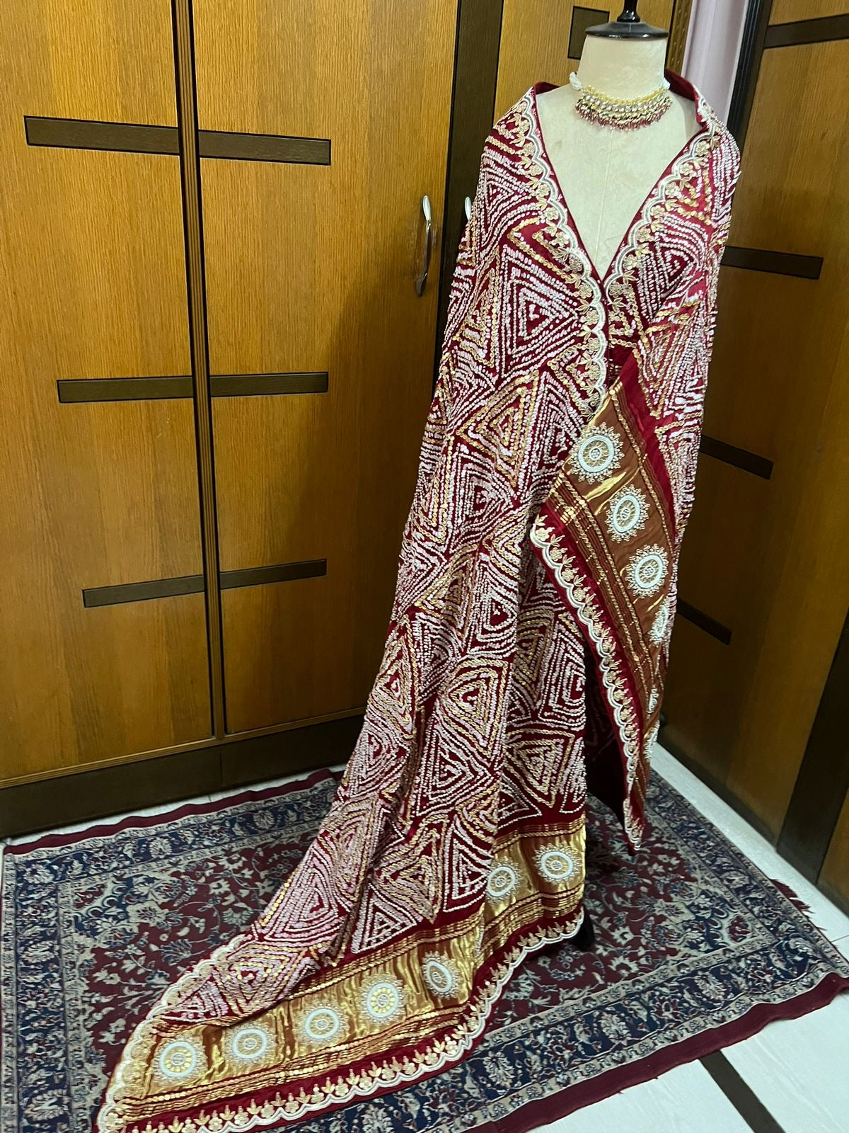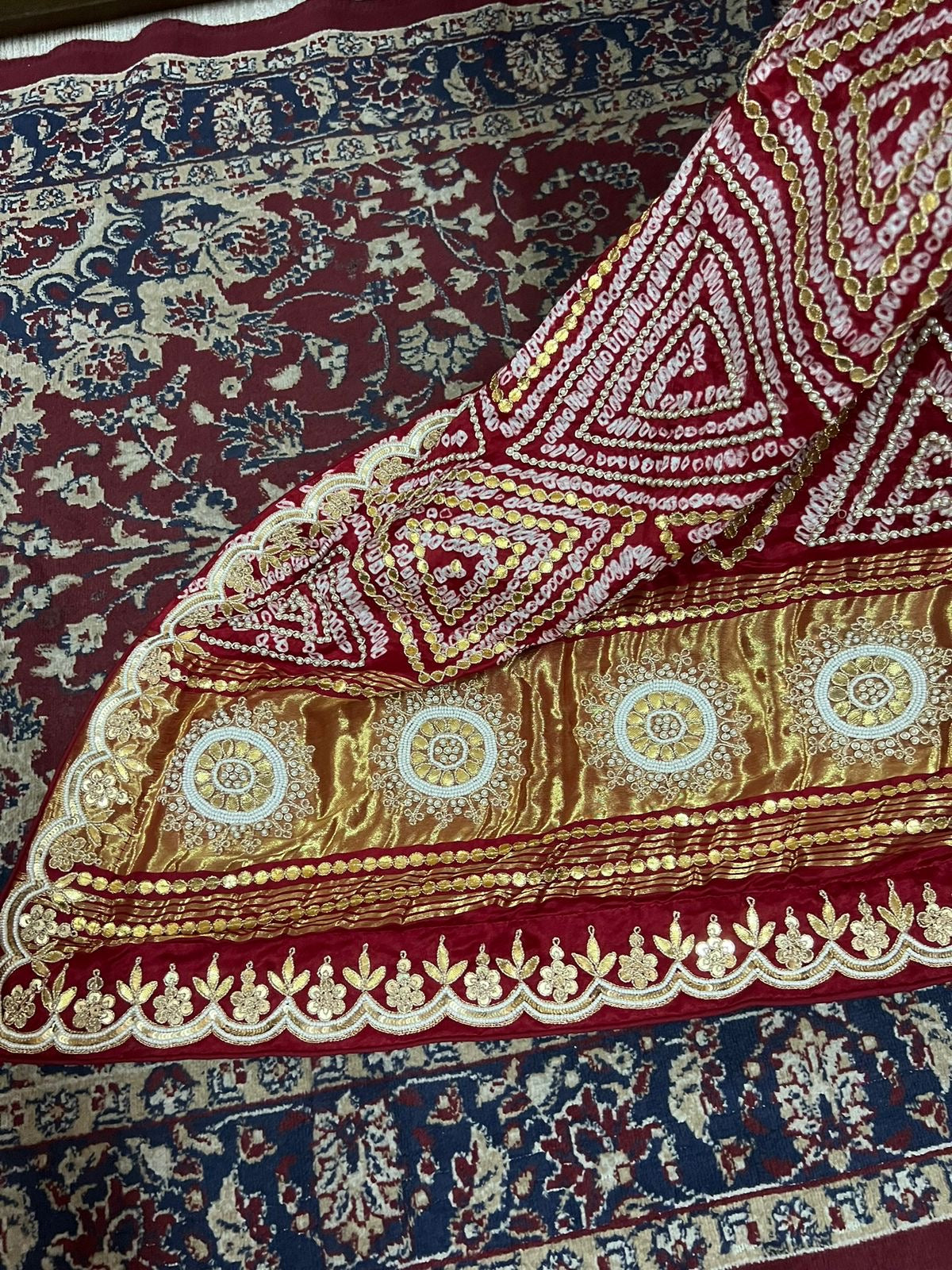 Handmade from 100% pure gajji silk, this bandhej dupatta takes 30 days to create. Experience the luxurious feel of silk and enjoy the intricate craftsmanship of hand-tied bandhej designs. Elevate your outfit with this unique piece that adds a touch of elegance and sophistication.