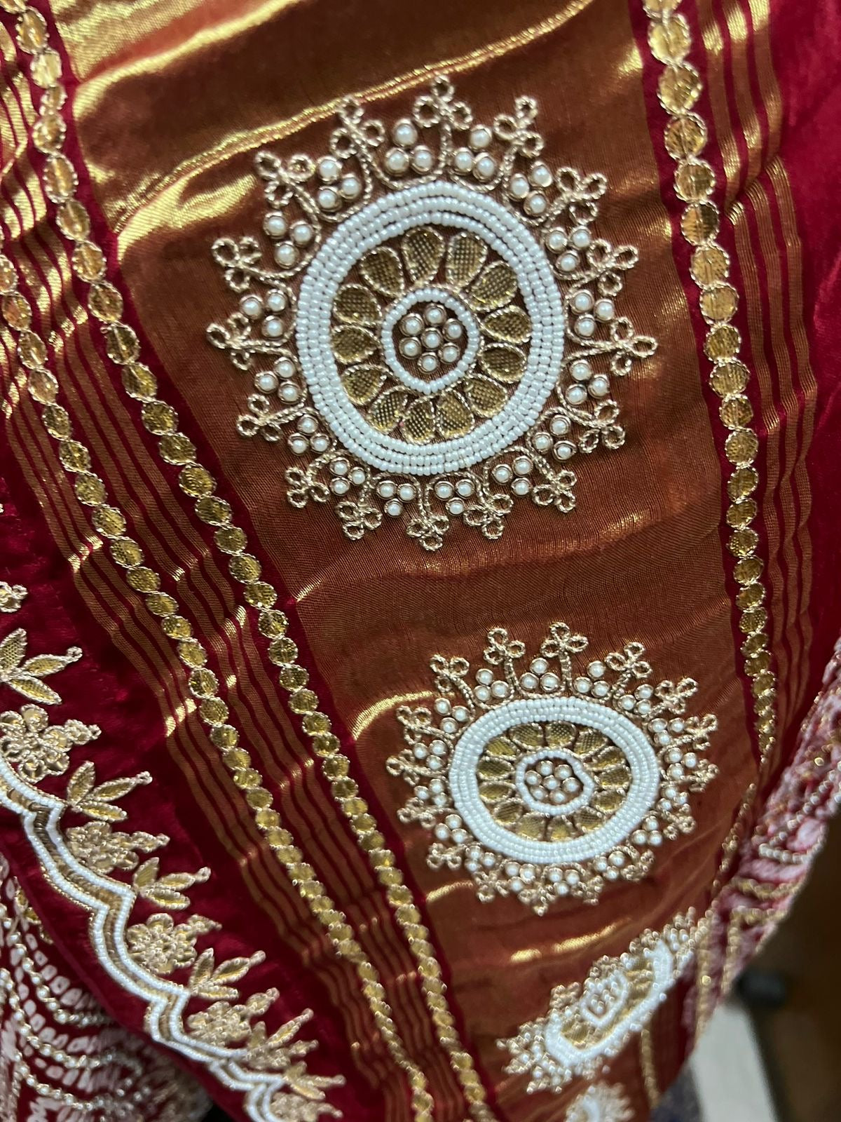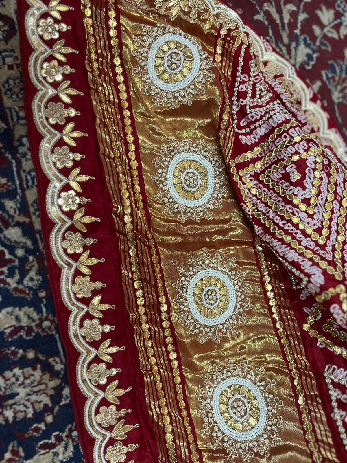 Red Gajji silk hand embroidery dupatta silk dupatta