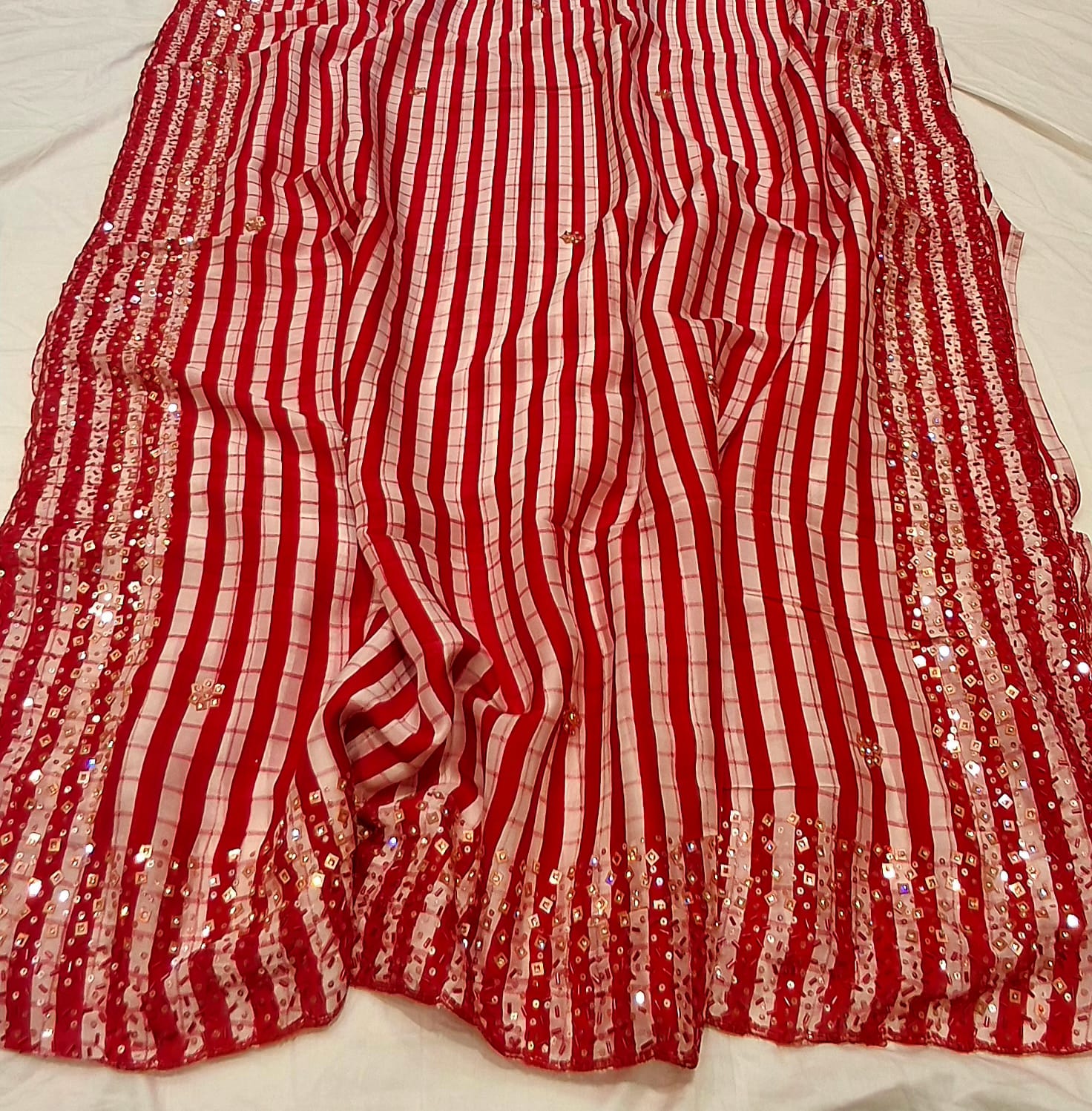 Red organza saree striped saree Indian wedding saree Partywear saris blouse