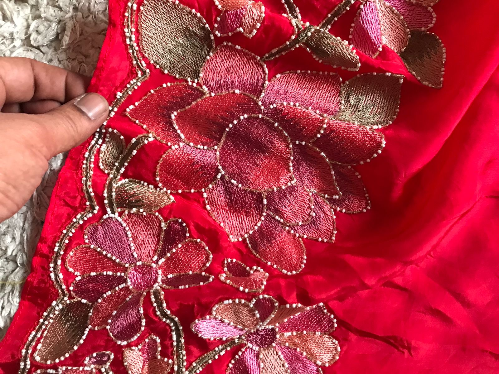 Premium Pure Organza Silk saree embellished with exquisite Resham thread lotus embroidery adorned with cut daana handwork & running handwork bp