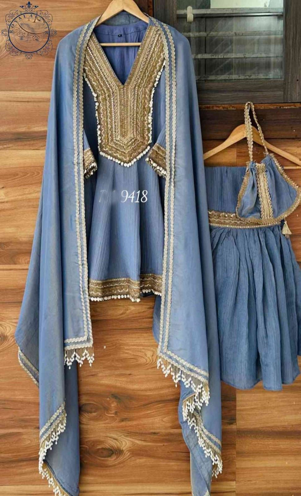 pure crushed tissue shimmer designer stiched sharara with beautiful antique lace detailings....