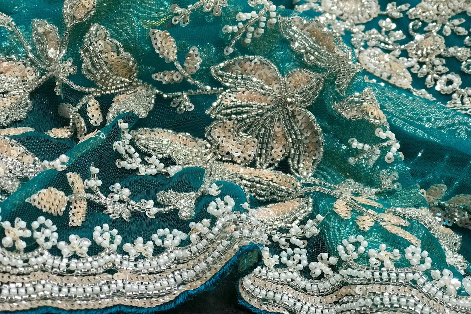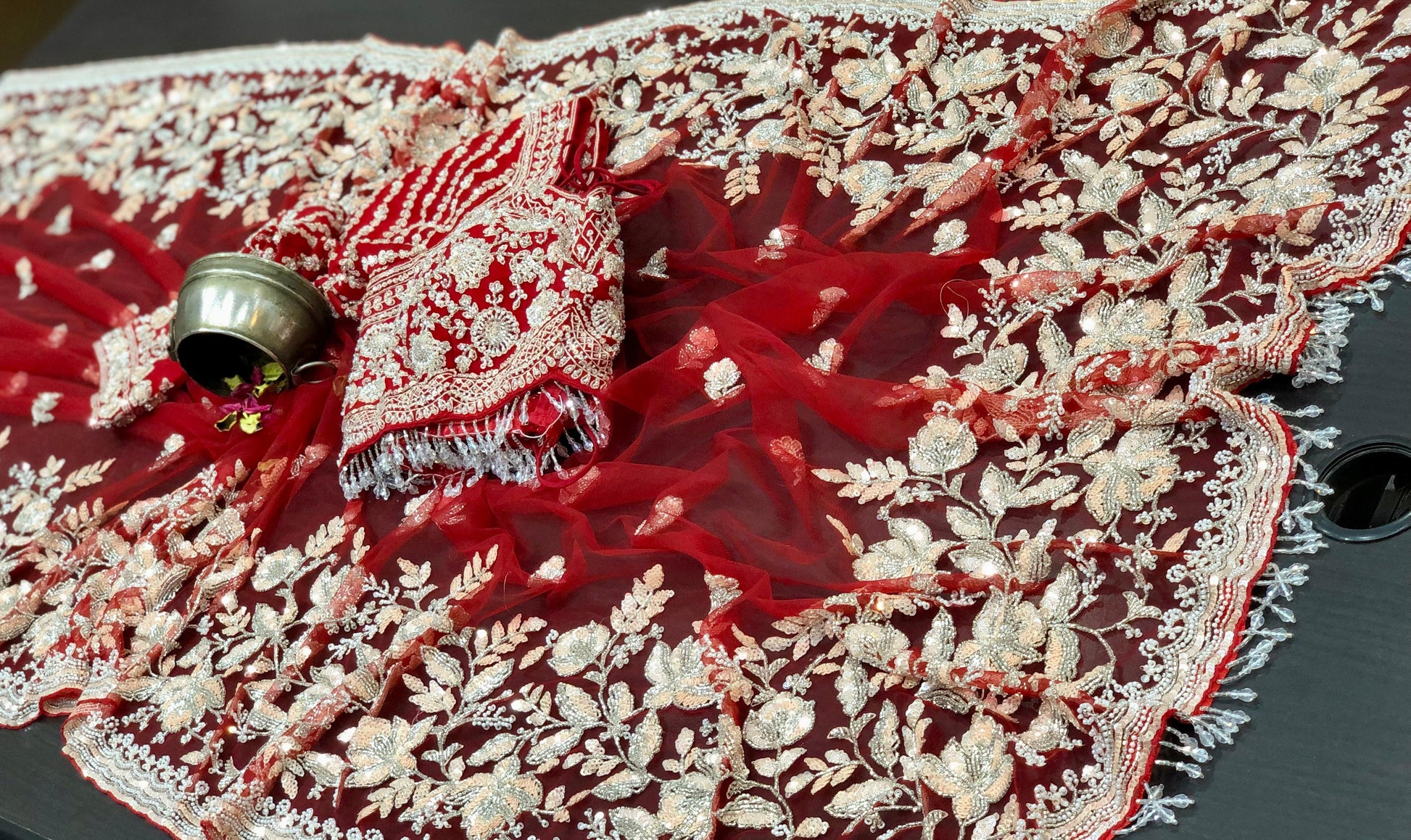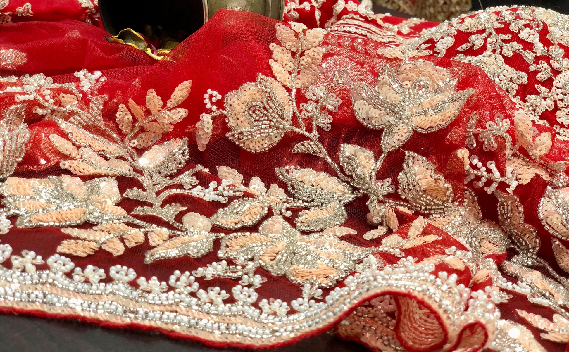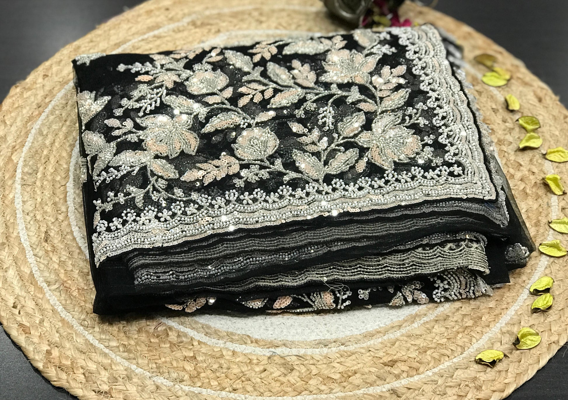 Sabyasachi Inspired Pure Net Designer Saree with Intricate Handwork Of Cutdana Sequence & Zardozi with Full Sleeves Stitched Blouse