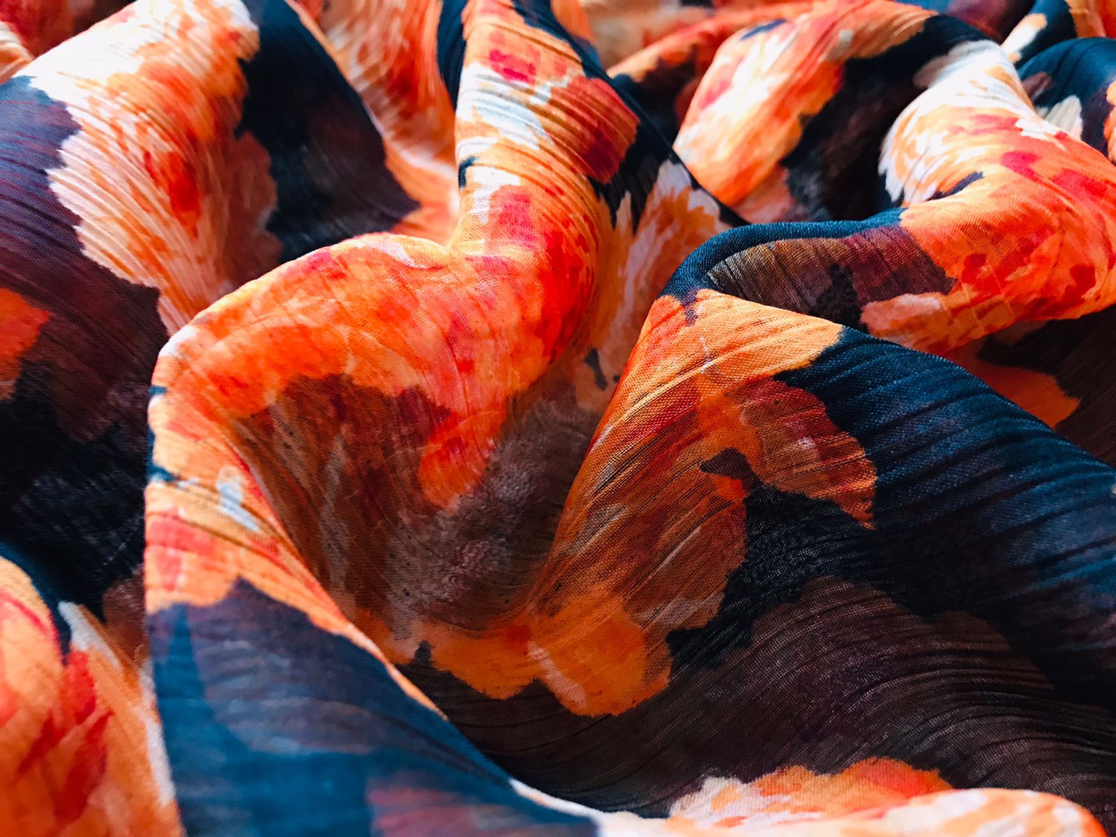 Spring Season Special Premium Chiffon printed drapes of grace n beauty in a feather soft texture embellished with pearl cut daana handwork & contrast pure chinnon handwork bp